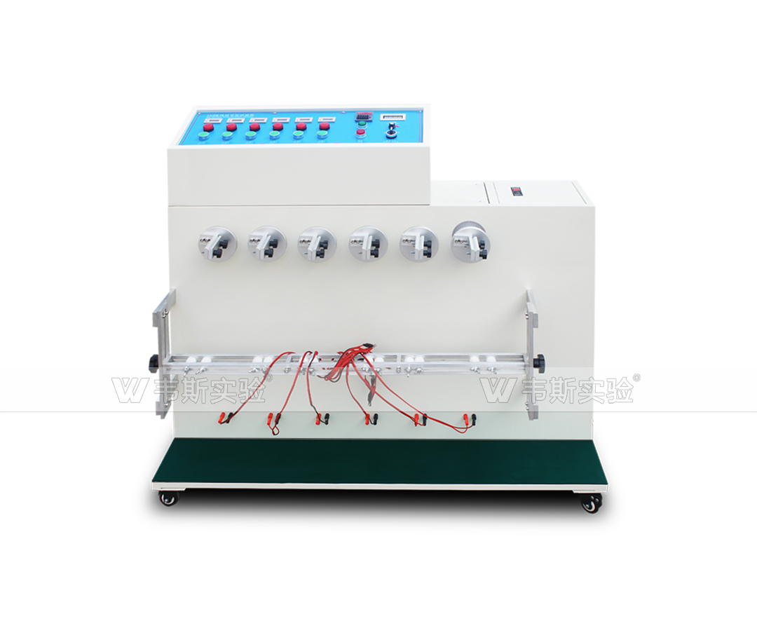 5、六组工位同时工作,互不影响,分别计数,其中一组断线,对应计数器停止计数,机器照常试验,提高测试效率;