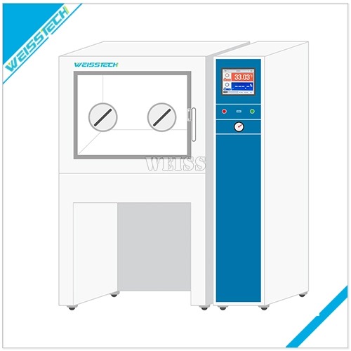 5、试验箱门采用大窗口双层真空钢化玻璃,有效隔热保温。窗口设有两个操作入口,采用乳胶长手套进行隔离,避免人工操作过程中对恒温恒湿条件的影响。