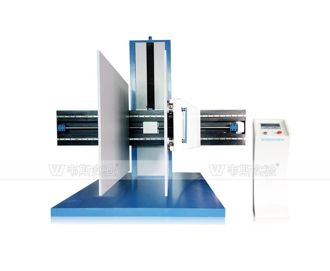 夹抱试验机用于模拟夹车装卸包装件时,两夹板之夹持力对包装件及货物产生的影响,夹板可设定左右移动。