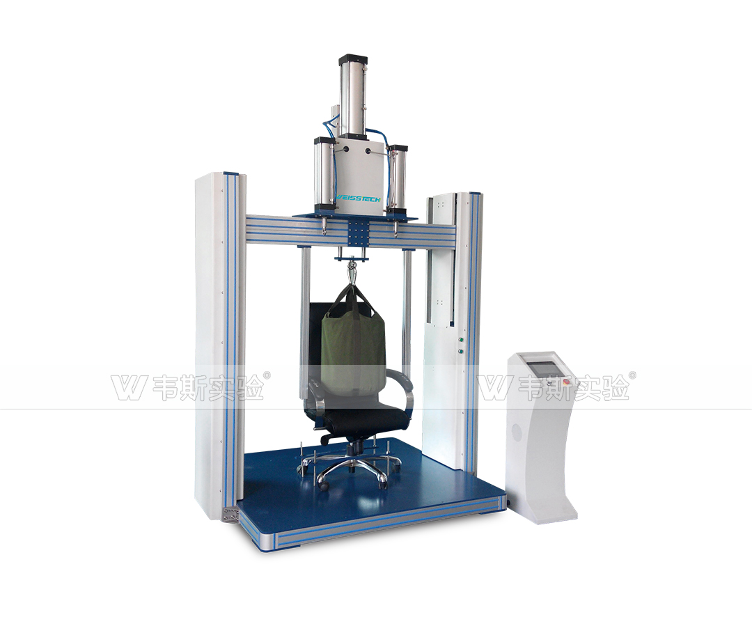 冲击试验机模拟办公椅的使用情况,测试椅子扶手结构抵受垂直压力和重复荷载压力的能力,此荷载可以看做作是离开座位时把扶手作为支撑而产生的力。