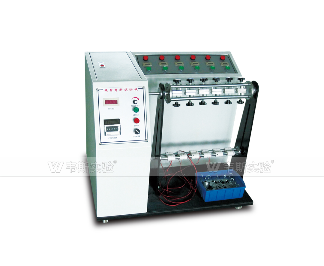 将试料固定在夹具上,并加一定荷重,试验时夹具左右摆动,经一定次数后,检视其断线率;或至无法通电时,查看其总计摆动次数。本机能自动计数,试料弯折至断线无法通电时,并能自动停机。
